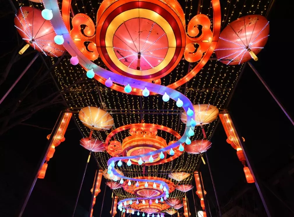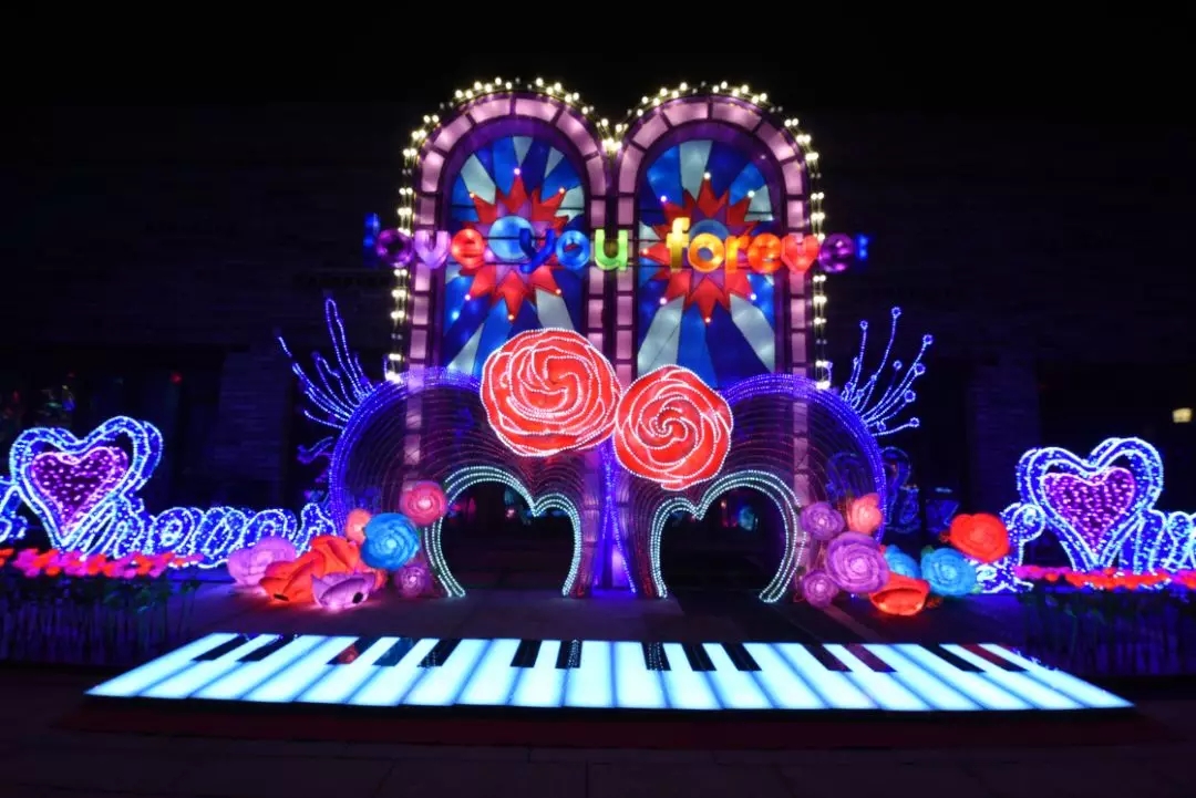 这些闪亮的灯组是结合即墨古城优秀的传统文化精心设计而成,既有生肖拜年、儒家思想、即墨老酒、柳腔等地域传统元素,又有爱情、童年、灯谜、音乐、游戏等主题互动灯组。