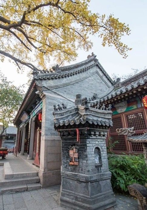 明代之后多次重修,现在看到的临街戏楼,是1937年大修时重建的。后殿基本保存原貌,院内两棵老银杏是明朝的遗物。