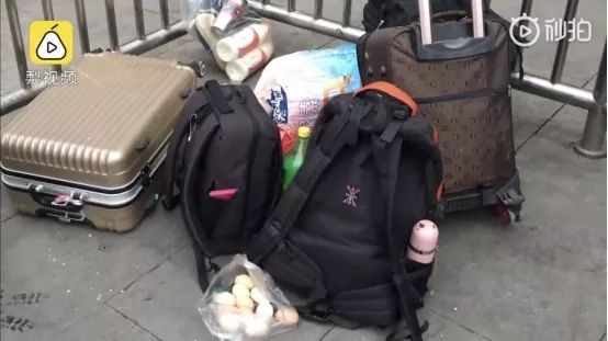 比自己身躯还大的编织袋、扎成小捆儿的蔬菜、满满一桶稻米和几十个土鸡蛋,这些就是奶奶春运携带的全部行李。