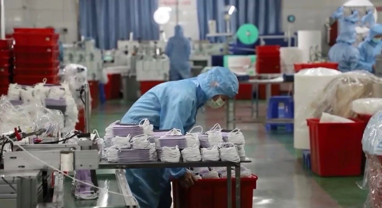 在广州一家医疗器械企业,工人们腊月二十九便返厂复工,爆竹声中,他们加班加点,生产出数十万只口罩。