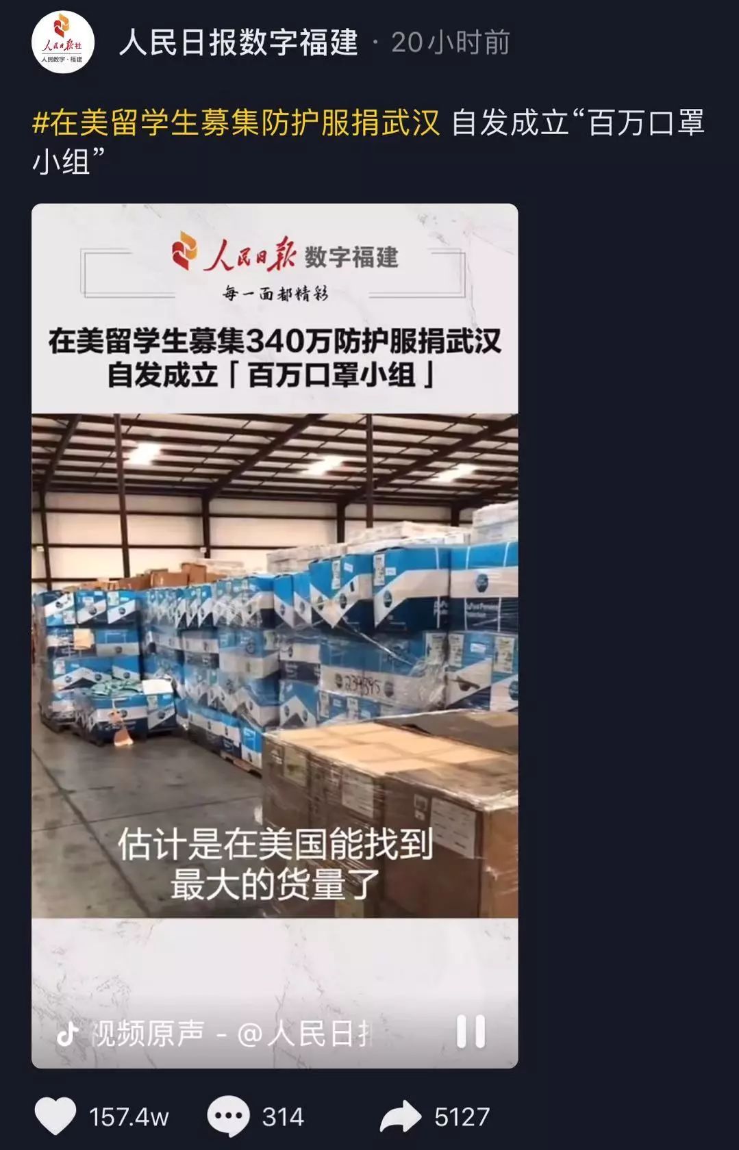 他们利用身边医药资源,成立“百万口罩小组”,24小时接力持续在海外搜寻口罩、防护服等防护等,与时间赛跑去搜集尽可能多的医疗资源。