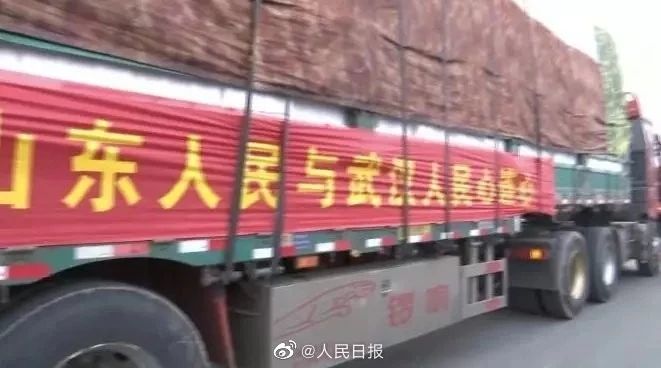 1月28日中午,山东寿光15辆满载20余种新鲜优质蔬菜的大卡车缓缓驶出,它们将跋涉1000多公里,为武汉补给。