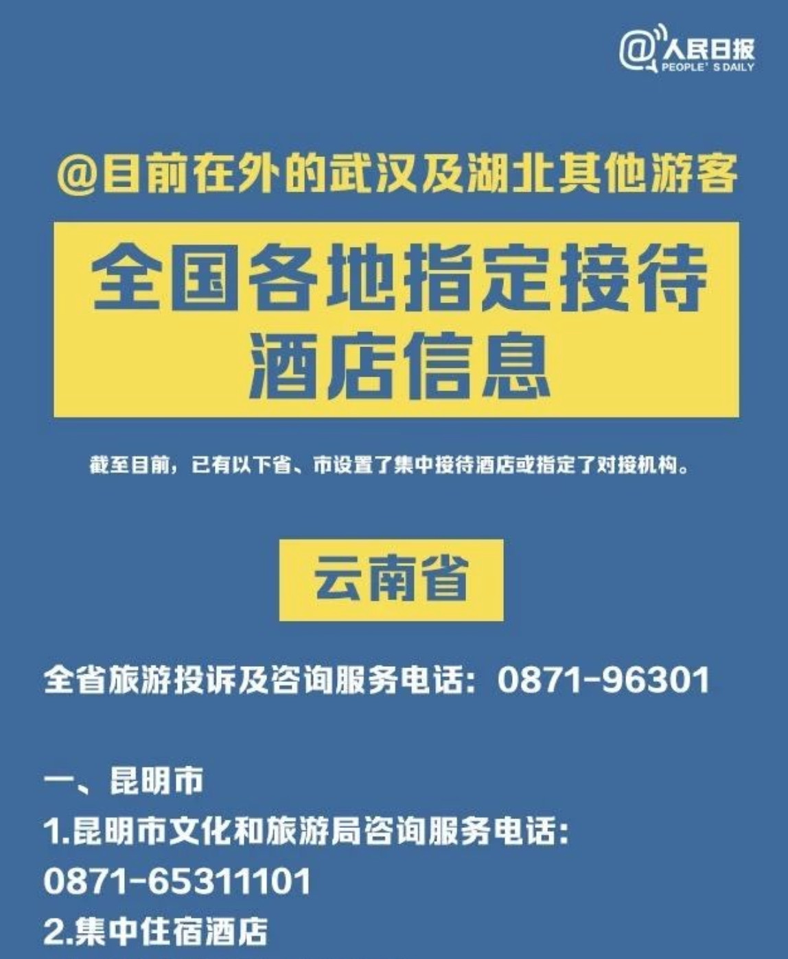 人民日报公布了全国各地指定接待湖北游客的酒店信息,让在外无法回家的武汉人感到温暖。