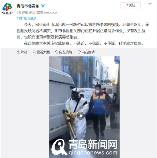 辟谣丨网传市北南山市场出现疫情 官方:正常消杀作业