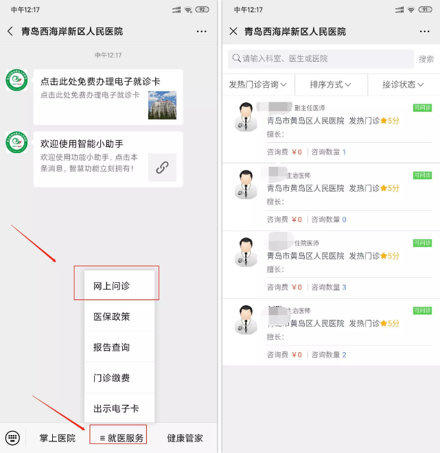 为积极防控新型冠状病毒感染的肺炎流行,增强群众自我防范意识,疏解群众恐慌情绪,正确引导患者就医,减少交叉感染的风险,近日,青岛西海岸新区人民医院微信掌上医院开通“发热门诊”免费网上问诊。