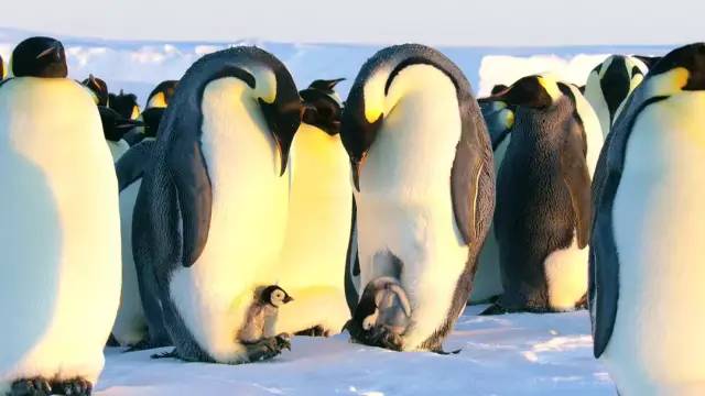 南极大陆,数千只帝企鹅爸爸团聚一起,与极其寒冷的永夜作抗争。他们等待新生命的出生,等待爱人的归来。