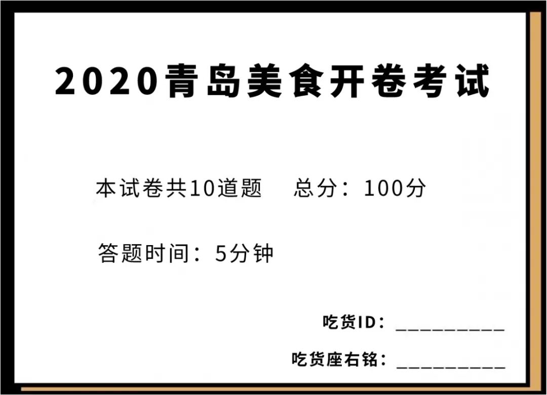 1、考试范围:【2020青岛美食】考试范围为青岛美食和美食品牌的名字,本次考试共10题,每道题中都有字数提示。
