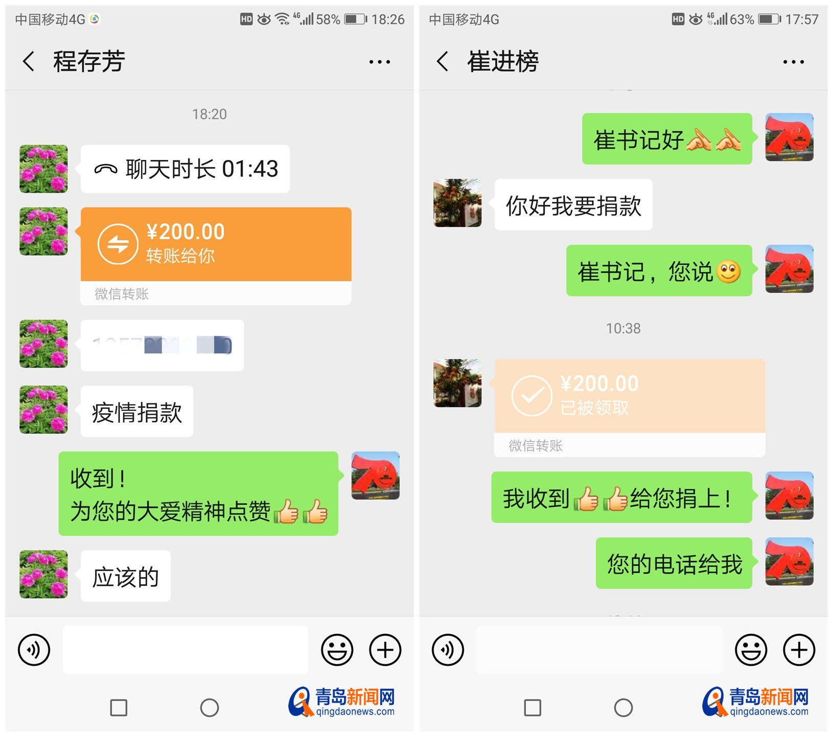青岛新闻网2月3日讯(通讯员 宗绪昌 李娟 许伟军)“老陈,听说你们在号召为防控疫情捐款,老爷子听说后非让我帮他尽这份心,一会儿我微信转账给你啊。”现居江苏的老党员、老干部赵忠芳得知凤台街道老干部党支部正在号召退休干部为防控疫情捐款,马上让儿子联系到街道老干部党支部委员陈清洲,替他尽上这份心。