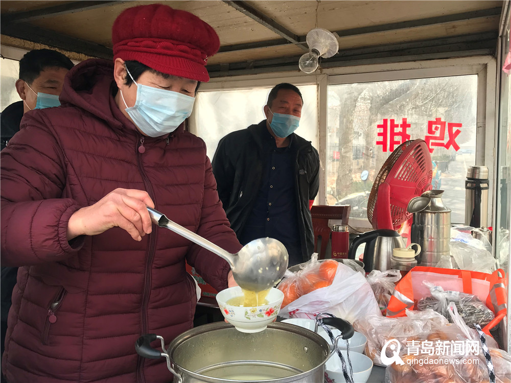 糖、苹果、橘子、麻花、鸡蛋、小米粥,还有从家带中带来盛小米粥的碗。“苹果我在家都洗好了,嫩直接吃就中;小米饭跟鸡蛋都是刚做的,趁热吃……这些年政府没少帮俺,能让大家吃上口热乎饭,也算是尽一份力”。言语间,杨乃华儿子刁建炜已经悄声站在执勤岗位上,打算替换值班人员。疫情面前,龙山街道没有旁观者。