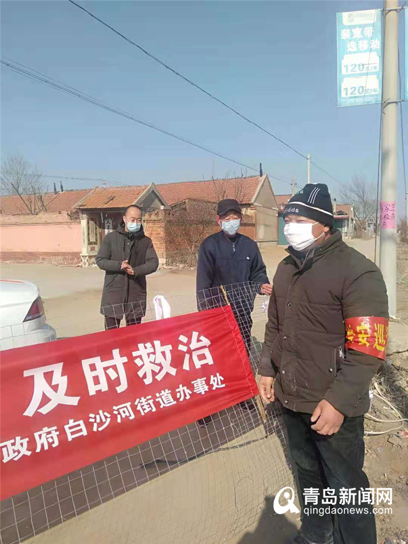 白沙河街道办事处副主任杨好杰,社区负责人王京玺,孙宝宝,付胜春,放弃春节在家跟亲人团聚机会,每天到辖区各村巡视村庄封闭情况,调查有无疫情发生。