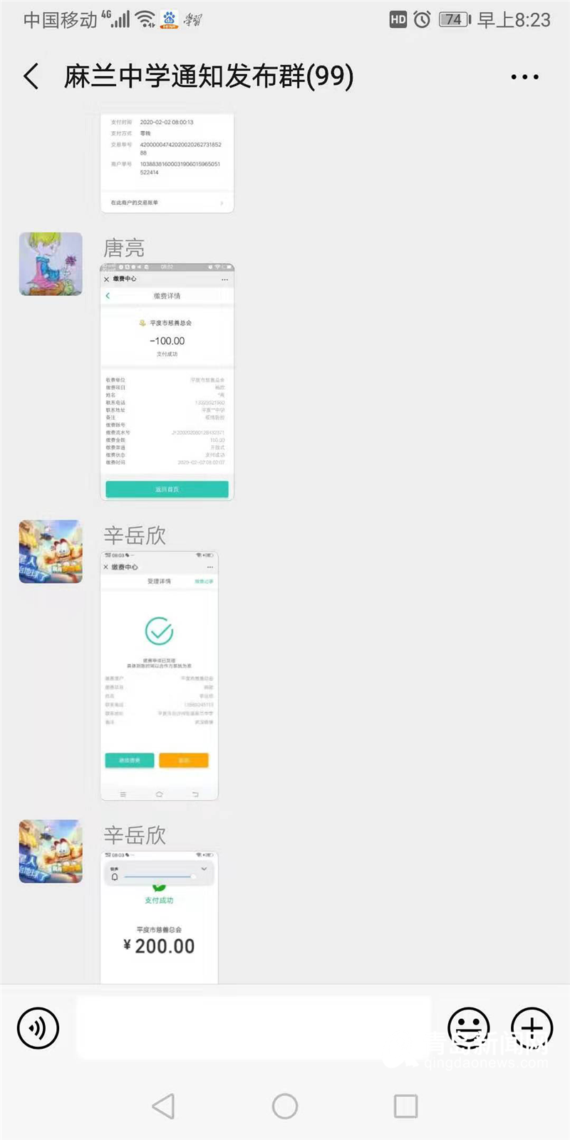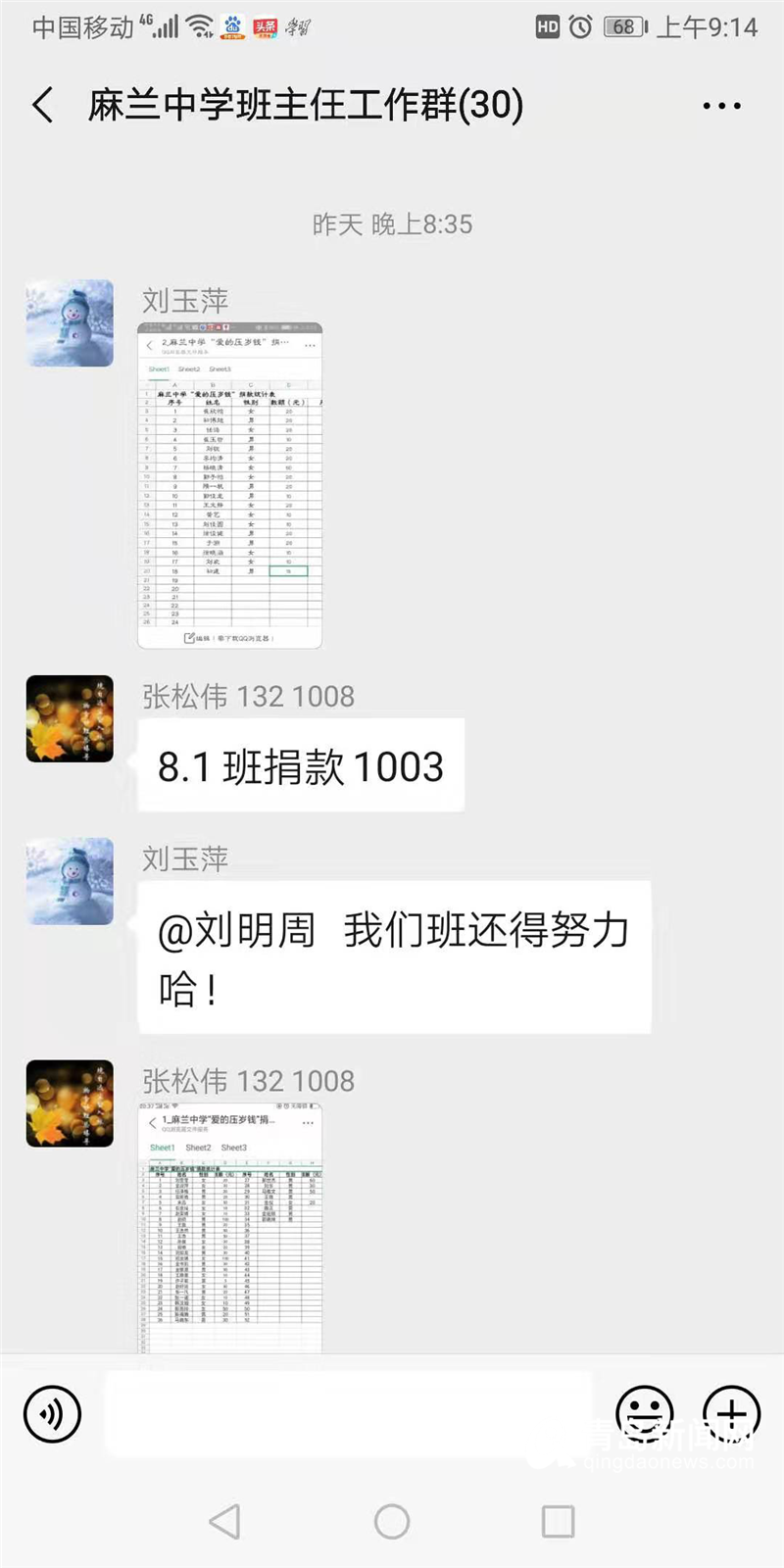 麻兰中学师生自发组织用微信捐款支援武汉疫情。用自己的希望筑起疫情抗争的胜利长城。