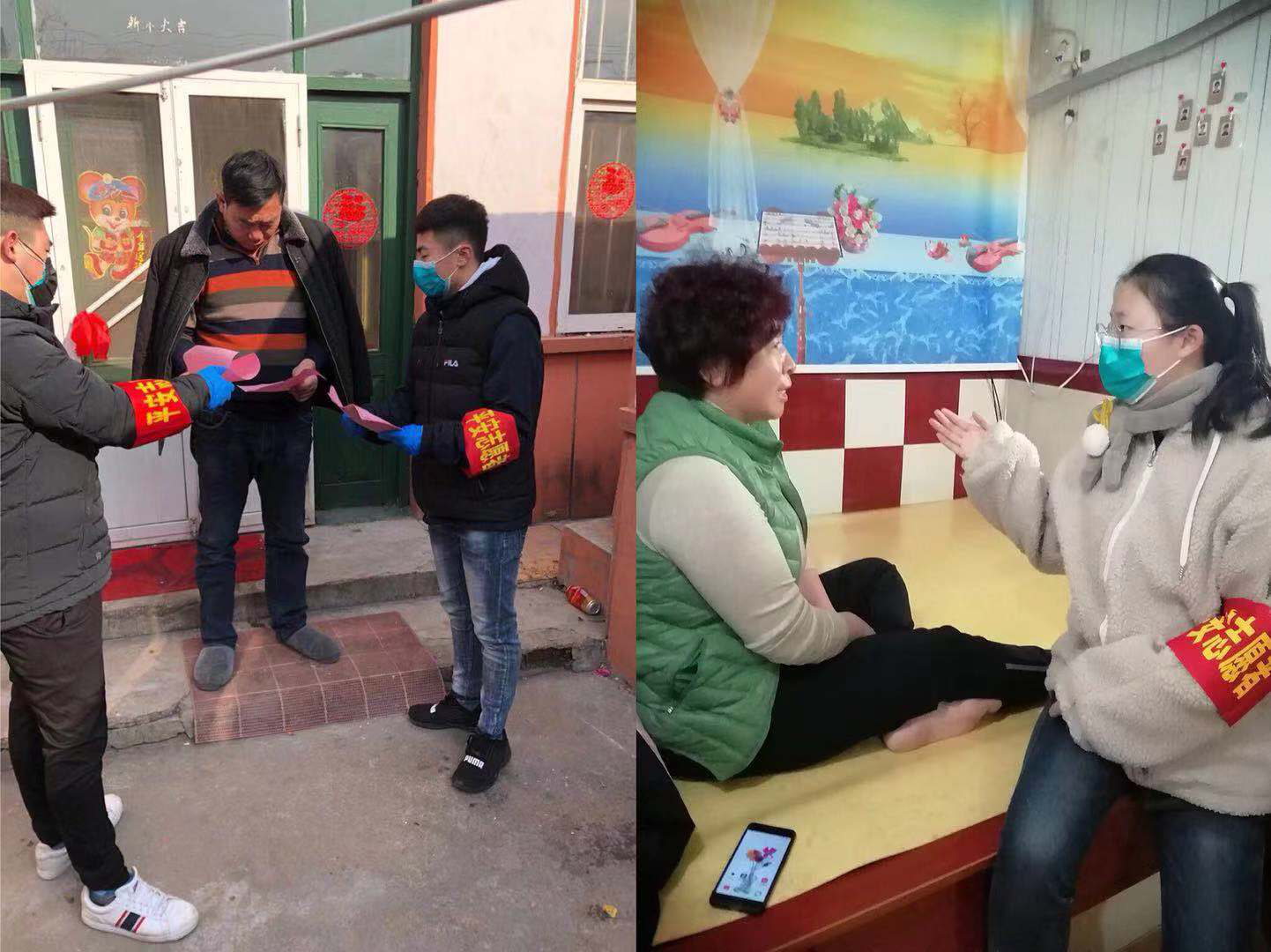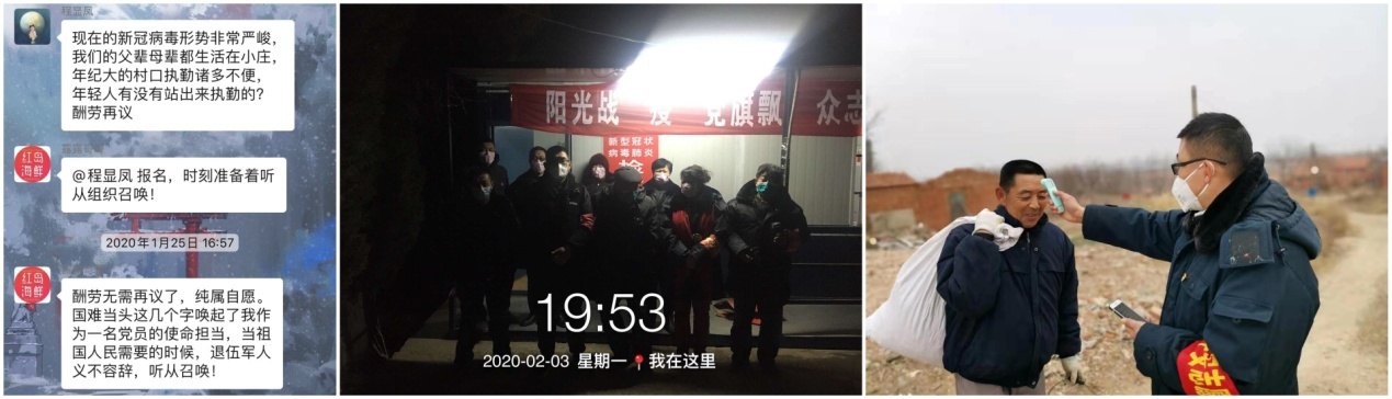 “我是共青团员,随时等待召唤。”“我大学学的护理专业,可以报名吗?”“在咱们村群里看到检查站工作人员的照片,时间紧任务重,硬件设施也比较简陋,他们大冷天儿还在坚守岗位,实在是太辛苦了!作为一名人民教师,我认为自己有责任有义务站出来!”高一学生宁晓龙、大三学生宁淑芳、初中老师宁允典组成了宁家社区的志愿者团队,“您好!我们是疫情检查站的志愿者,请出示一下您的证件,量一下体温,谢谢您的配合!”这三名带着口罩的志愿者不怕寒冷为过往人员进行体温测量和信息登记。