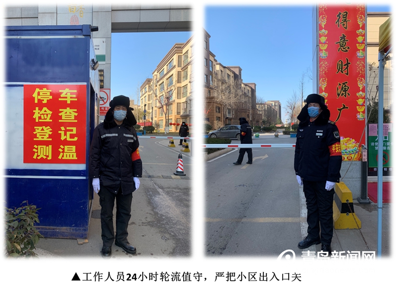 防控组对小区实行封闭管理,只保留东面一个出入口正常通行,并设置进、出口两道卡口,强化小区出入管理,安排人员进行三班轮流值守,24小时不间断地对进出小区车辆及人员进行检查、登记、测温、消毒等工作,以“外防输入,内防扩散”的要求,把牢疫情防控最前线