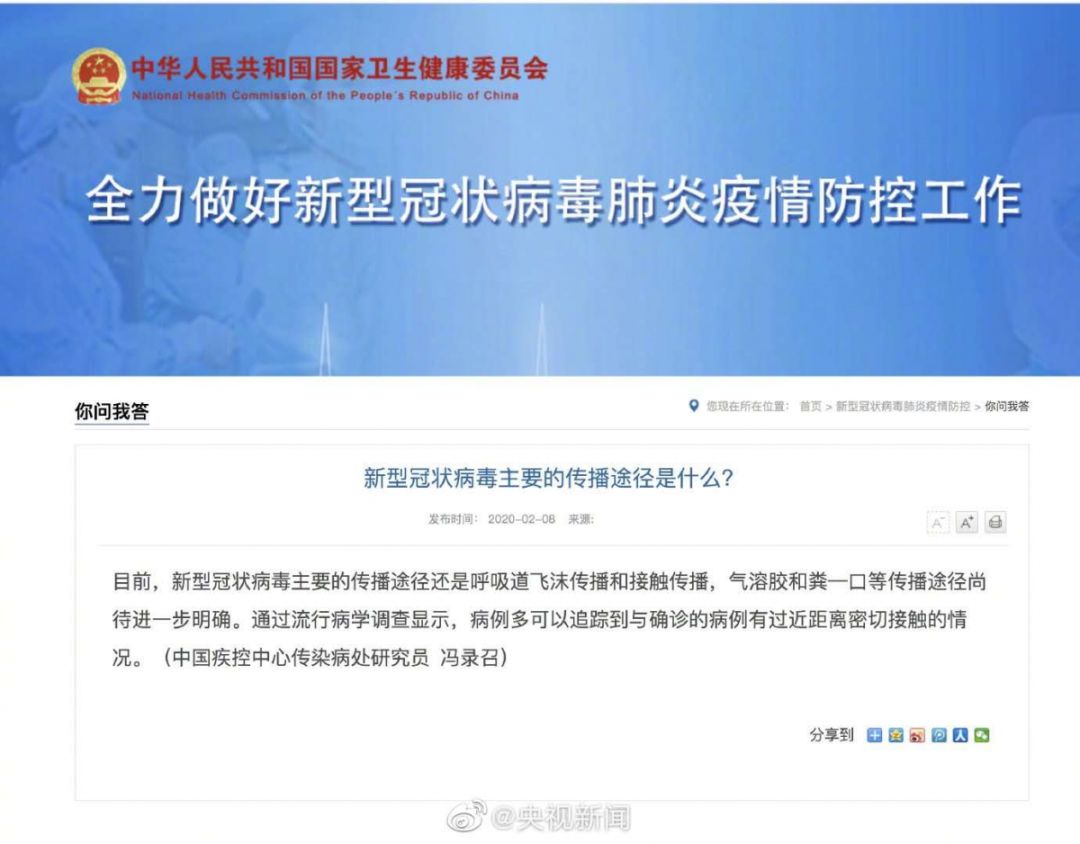 “气溶胶和消化道等传播途径尚待明确”
