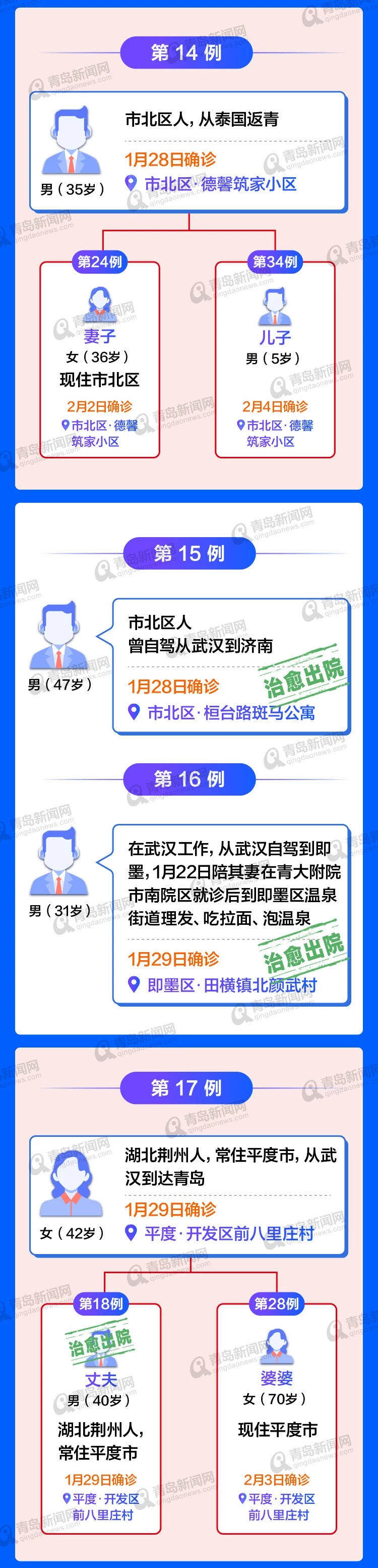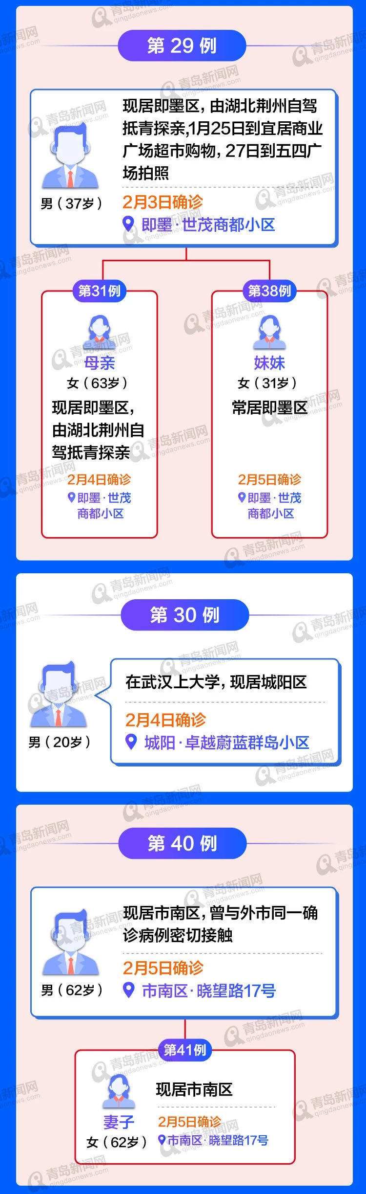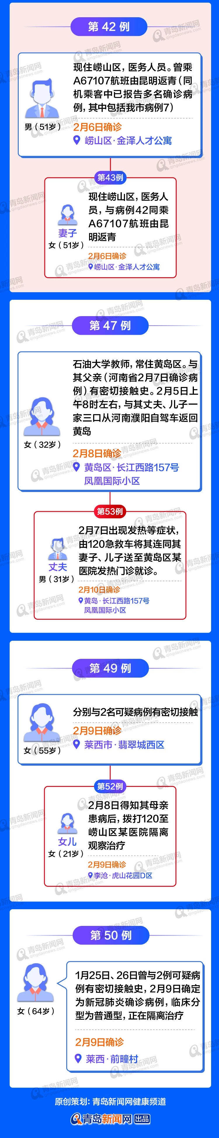 截至2月11日24时青岛确诊病例53例(均为输入性病例)其中多起家庭聚集性疫情,特将图谱奉上居住地址公布。