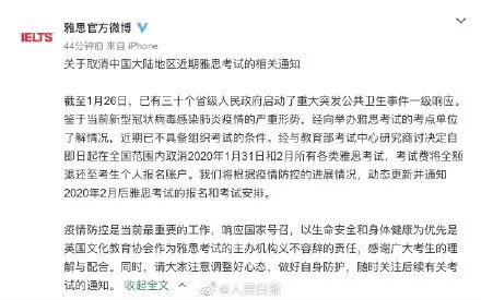 1月27日,雅思、托福、GRE考试官方宣布即日起至2月取消全国范围内所有考试。