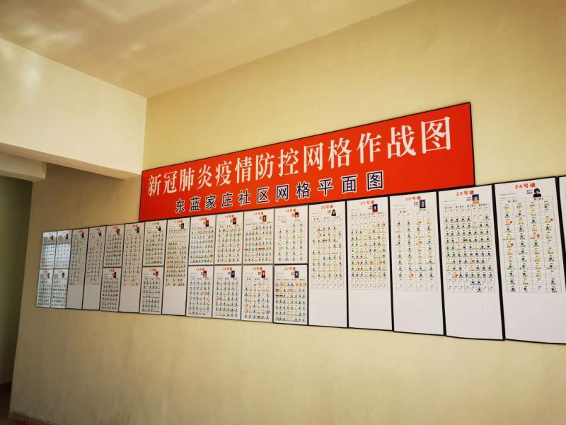 “挂图式”作战,吹响战役集结号。第一时间传达、第一时间部署、第一时间落实。东蓝家庄社区采取挂图作战和网格化方式,依托辖区网格化平面图,制作“东蓝家庄社区新冠肺炎疫情防控网格化作战图”并悬挂,用不同颜色明确标识社区内本地村民、出租房屋、购房、流动人口、居家隔离情况,对陆续返回社区的人员,按格按户进行动态登记,一日一清、一日一报,为疫情防控工作助力!
