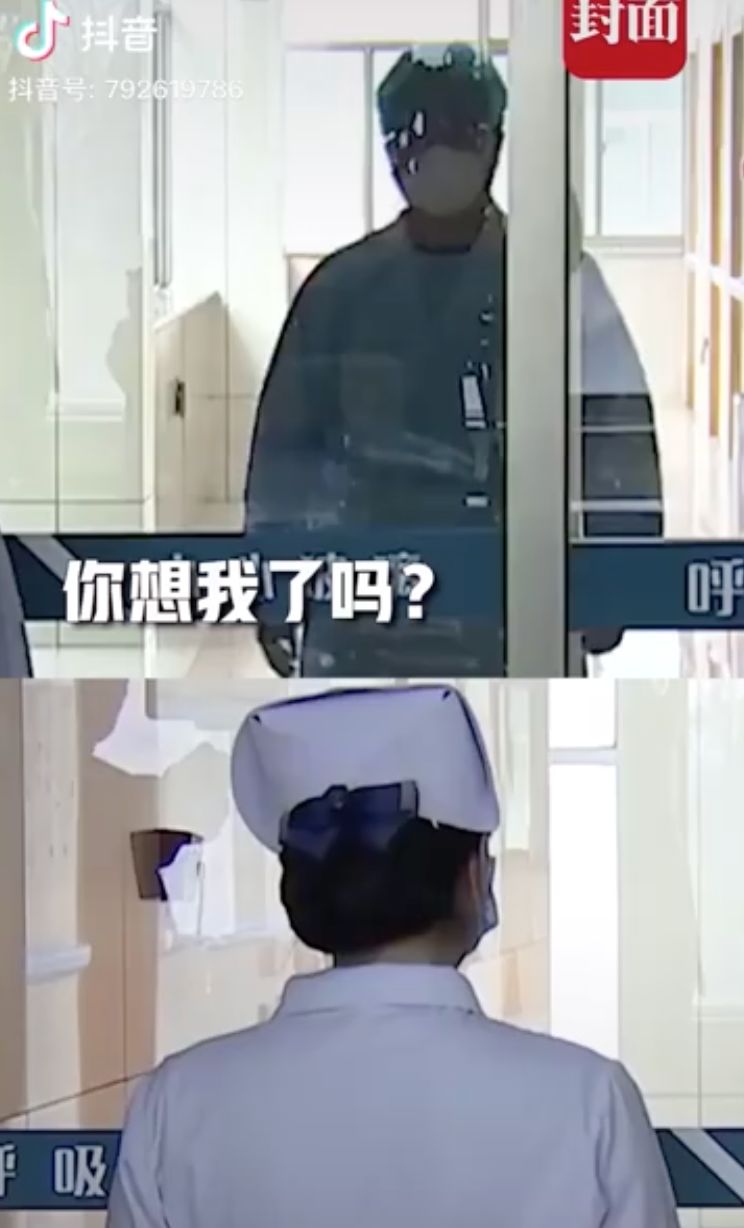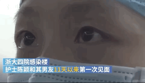 95后护士陈颖,跟前来看她的男友隔门对望。她哭着对男友说,“好想你抱抱我,我但抱不了。”