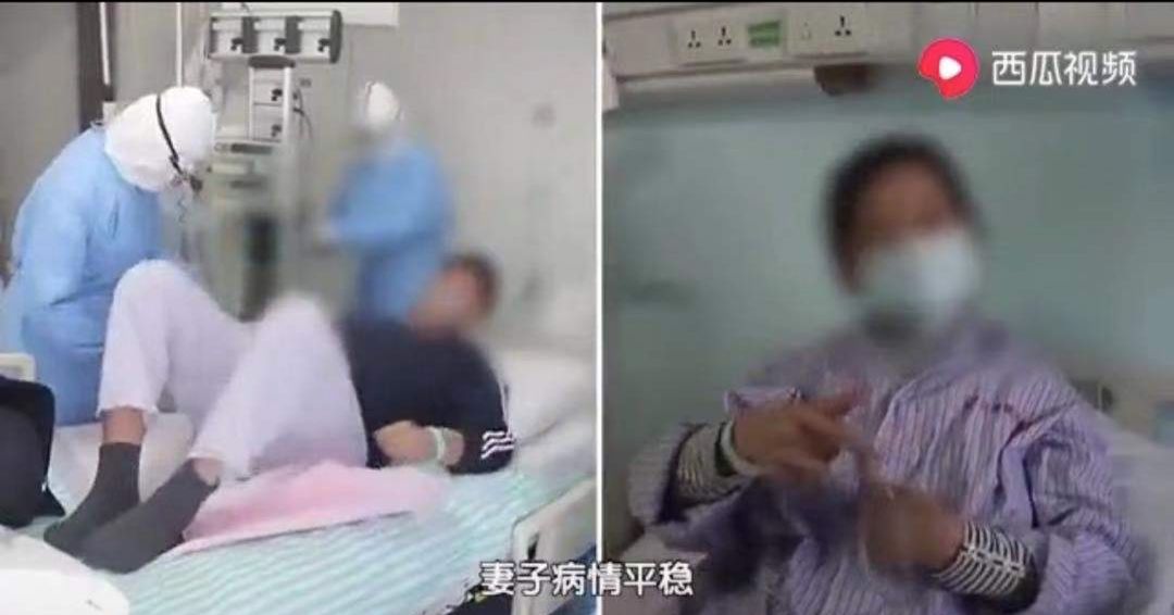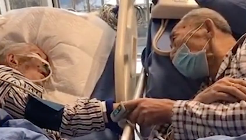 成都ICU病房,一对耄耋老人正在做最后的告别。