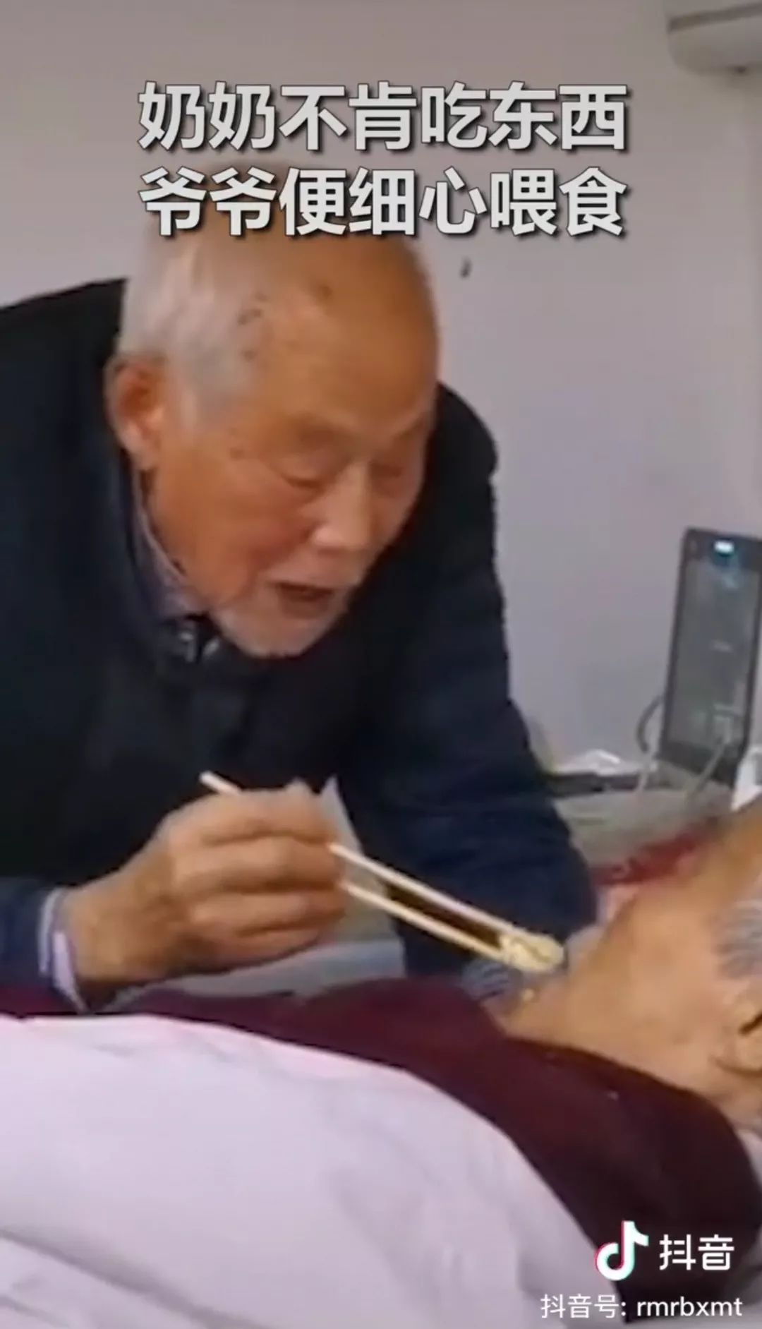 奶奶不肯吃东西,爷爷就承担下这份责任。