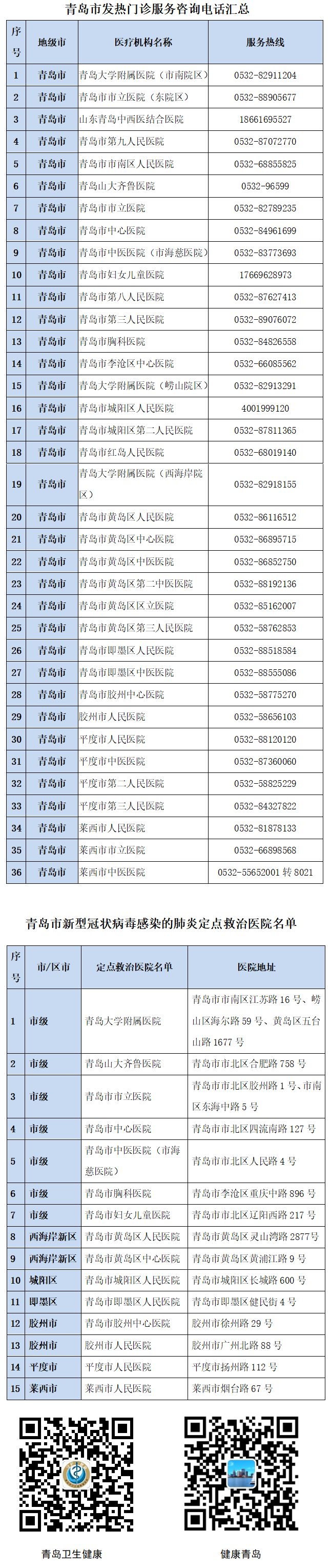 青岛市发热门诊服务咨询电话汇总