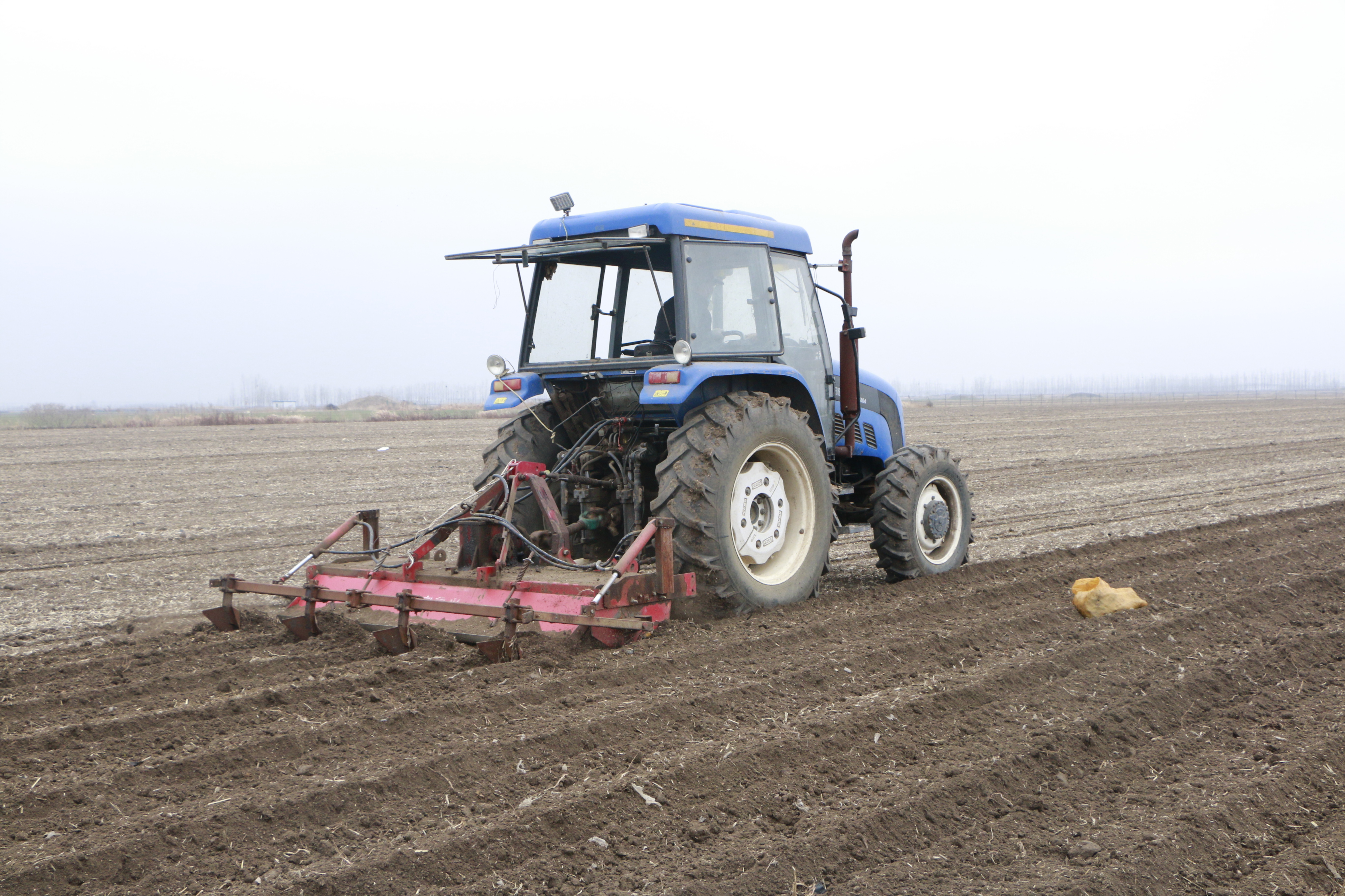 图:农耕手正在进行土豆种植前的开沟工作