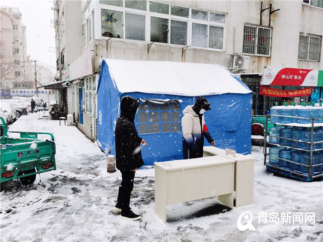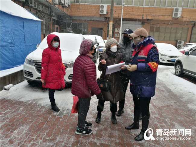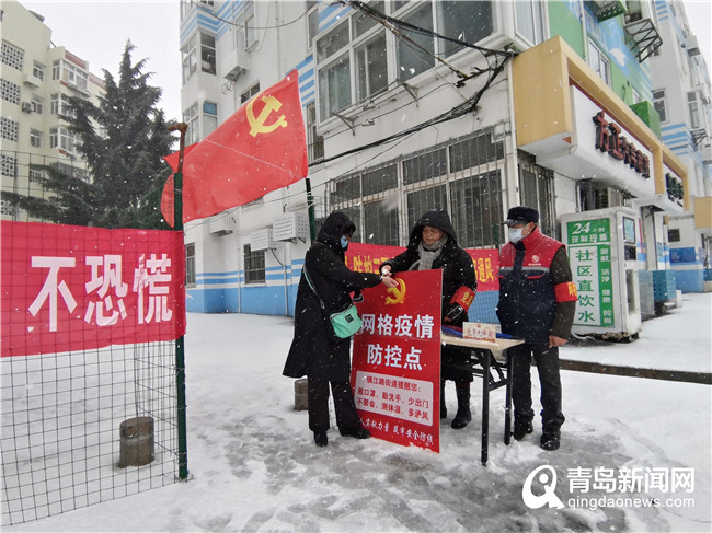 青岛新闻网 2月15日讯 2月15日,一场风雪席卷岛城,在这新型冠状病毒疫情防控的重要时刻,镇江路街道广大党员干部、志愿者坚守岗位、冲锋在前,以有条不紊地实际工作在凛冽的风雪中为辖区居民筑牢安全防护网络。他们冒着风雪坚守每一个疫情防控点、认真排查每一名进入居民、仔细登记每一辆进出车辆;他们不畏严寒清扫着出入口的积雪、对单元门口进行消杀,他们亮身份、尽职责、舍小家、为大家,冻红的脸颊、冻麻的双手,是他们执着的坚守,也是这场风雪中最美的风景,更坚定了我们打赢这场疫情防控阻击战的信心和决心!