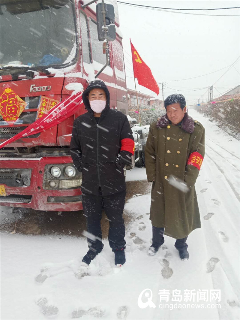 风雪中 平度仁兆镇抗疫志愿者在坚守