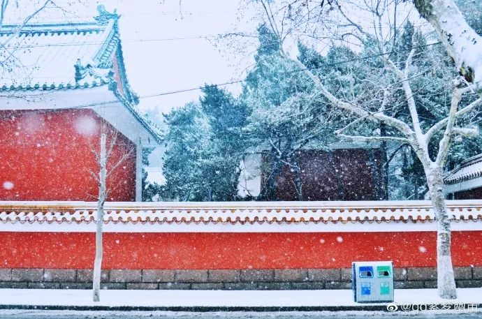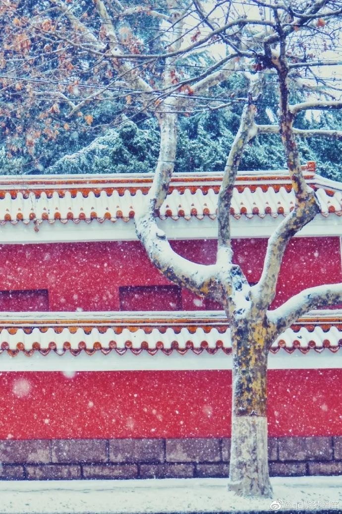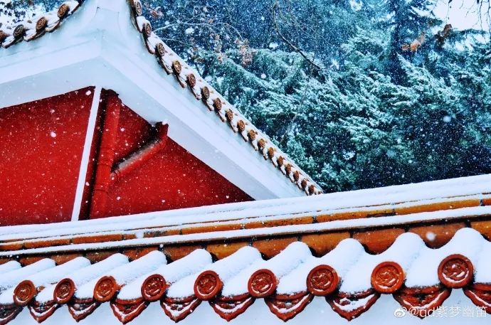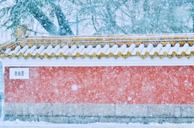 红墙金瓦在白雪的掩映下