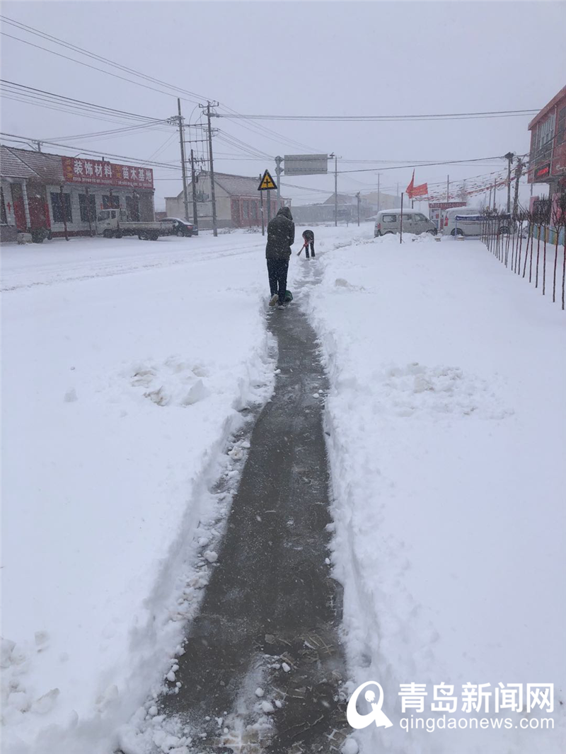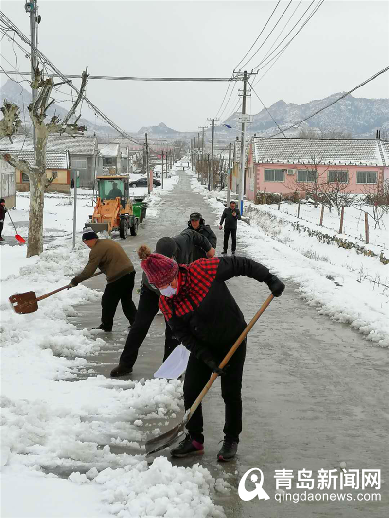 经过了一天一夜的飘雪,整个大泽山银装素裹,大街小巷铺满了厚厚的积雪。一大早,各村志愿者便纷纷出动,有的继续在雪中站岗值守,有的挨家串户提醒雪中出门的疫情风险,有的拿着铁锨和扫帚铲雪扫雪,有的开着铲车、大型推土机穿梭于街头巷口,有的送上一杯热茶、一碗馄饨聊表慰藉。尽管雪大风急,志愿者们的手和脸庞冻得发紫,衣服和鞋子也被浸湿,但是没有人有一句怨言。守住一道岗,守护一个村,缪力同心,与风雪抗争,与疫情抗争,这,是他们唯一的宗旨。