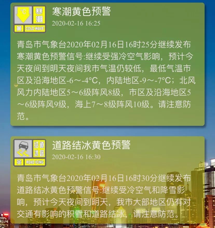 最低-9℃!青岛继续发寒潮黄色预警,注意防冻防滑