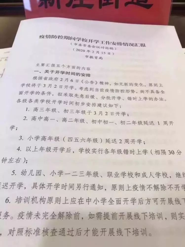 流传的学校开学时间为:高三、初三,3月2日开学;高一、高二、初一、初二,3月9日开学;小学4~6年级,3月16日开学;幼儿园、小学1~3年级、大学、职校继续延时,直至疫情消除。