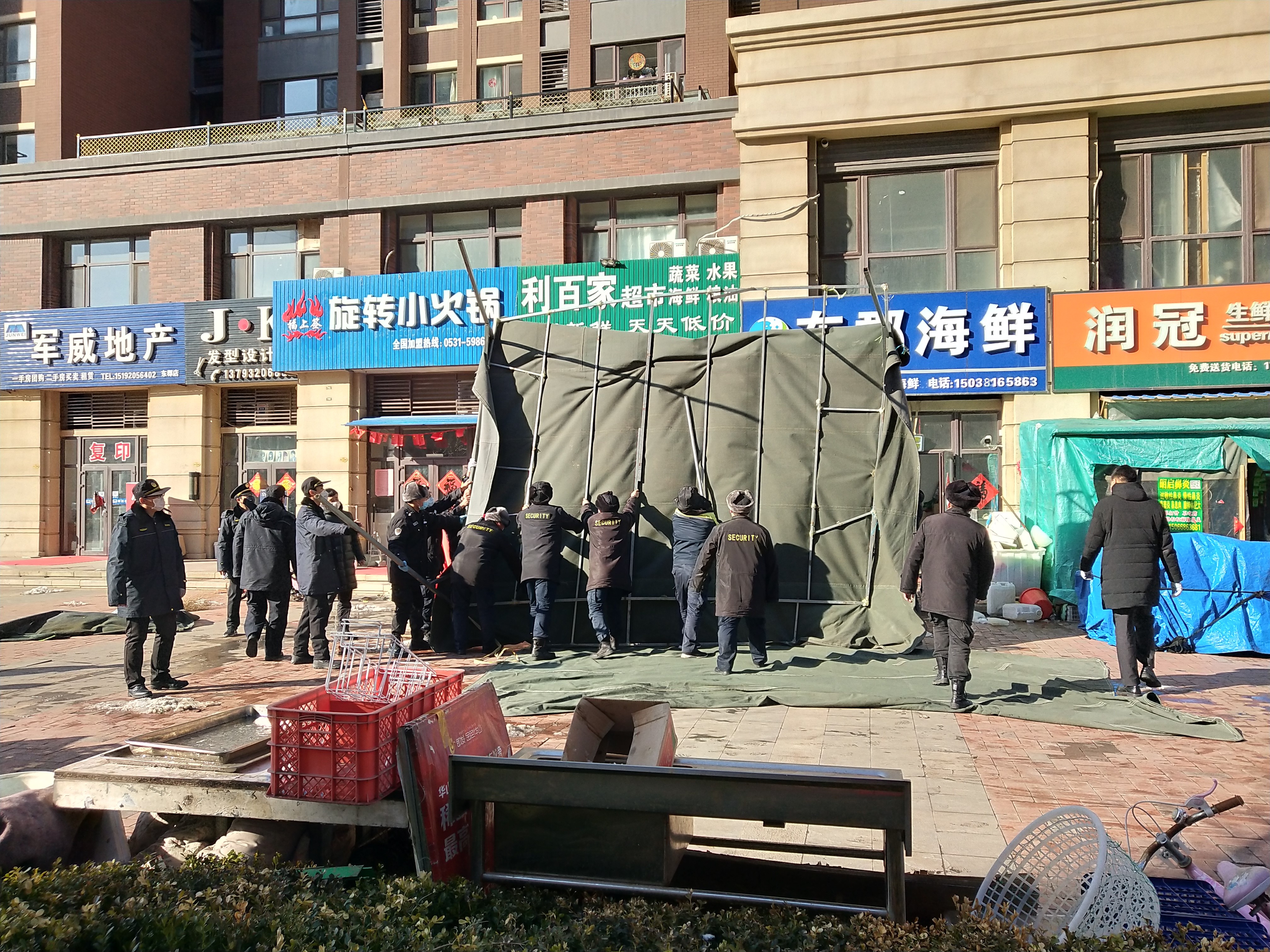 崂山居与城管部门联动监管,“扫街式”全面排查,形成高压态势,做到严管严控。针对不符合疫情防控规范的区域,坚决进行拆除、清理,保证沿街商铺疫情防控责任落实,保障社区生活物资消费正常运转。