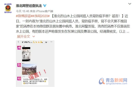 青岛新闻网2月24日讯(记者 丁淑华) 近日,一则内容为“青岛北岭山公园,有部分市民遛弯被逮个正着,人手一本防疫手册,谁背会谁先走,背不会别想走。”的消息在青岛人的微信朋友圈和微信群中传开。