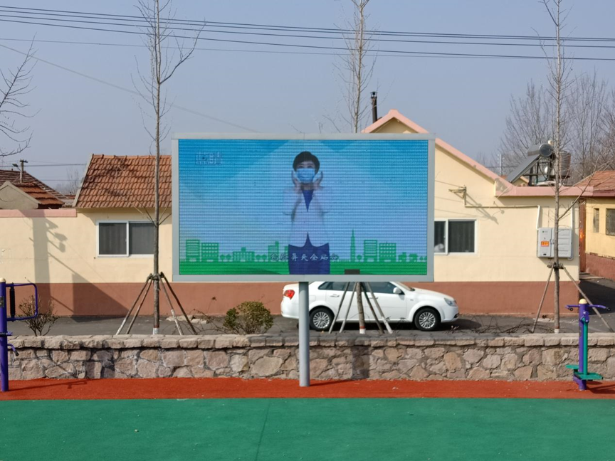 大喇叭、小喇叭齐上阵,村里的LED大屏幕也亮起来、响起来。潮海街道后铺下村,文化广场上的大屏幕亮了起来,每天早、中、晚三个时段循环播放疫情防控常识和防疫信息。网格员兼广播员高静告诉记者,为了让村民看得懂、记得清,村委还把疫情防护相关知识以及提醒居民注意的事项整理加工,编成容易理解记忆的顺口溜、标语、即墨方言等,通过大屏幕循环播放,让村民看得到、听得懂、记得住。