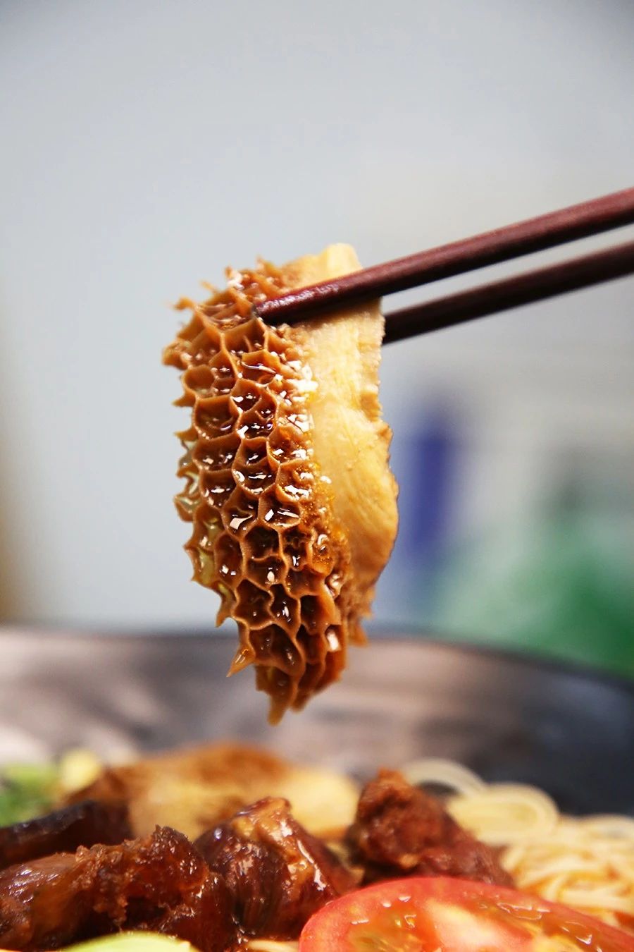 大片的金钱肚,鲜嫩Q弹,入口鲜甜。配上煮熟不烂的手工面条,宽厚扎实,吸饱汤汁~