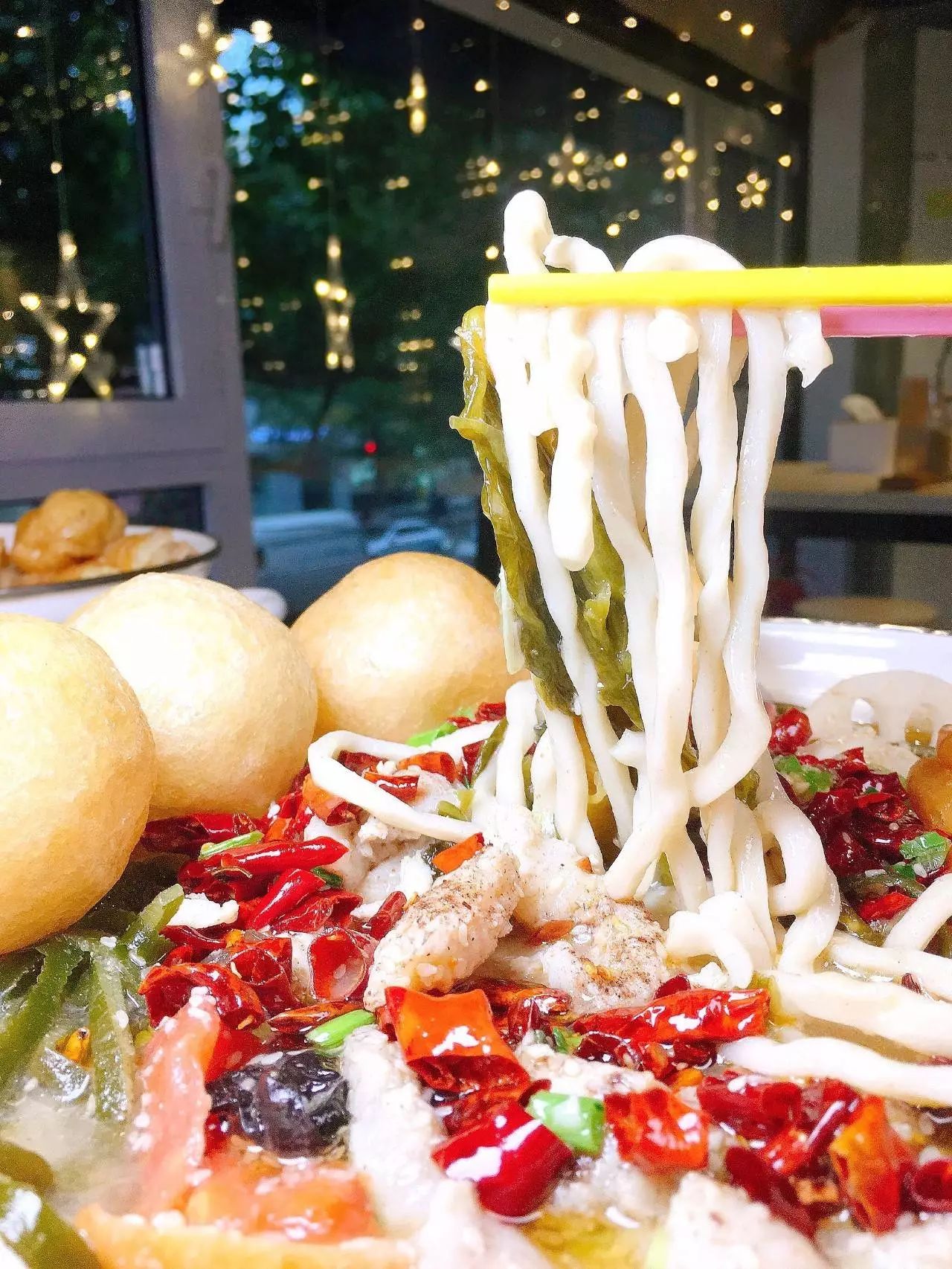 招牌酸菜鱼面是店内招牌。酸菜鱼片不仅大,鱼肉还很新鲜嫩滑完全没有腥味,热油浇上。辣椒的香气完全激发出来!