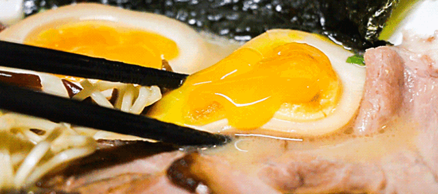 溏心蛋软嫩如豆腐,用线切开,一瞬间如日出光辉倾泻!先卤煮再现烤的叉烧,每一片都是hin大片!
