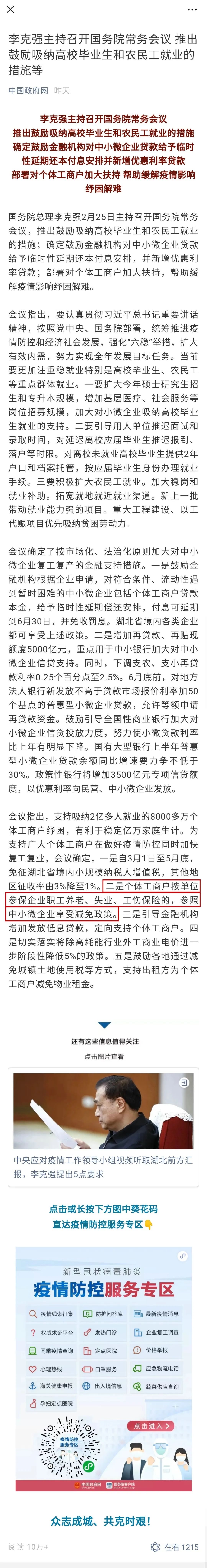 重磅!个体户社保费阶段性减免来了!国务院昨天官宣