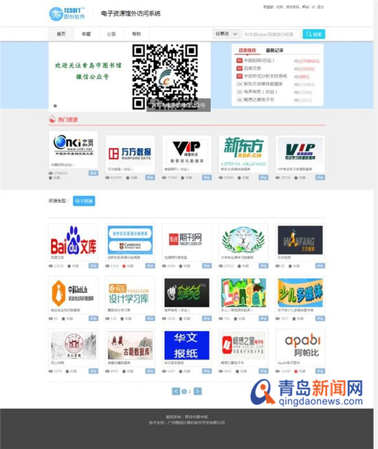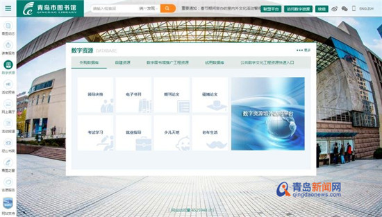 目前,青岛市图书馆数字图书馆数字资源包括1亿2000万篇论文、130余万份免费电子图书、视频、有声读物等,可访问资源总量在350TB以上,有PC和移动端两种访问方式,具有资源量大、内容丰富、使用方便等特点。疫情防控期间,市民和读者可以通过访问青岛市图书馆官方网站,点击首页右上角的“访问数字资源”按钮登录数字图书馆;还可以通过关注青岛市图书馆微信公众号,进入“青图悦读”栏目的方式进行数字资源访问,从而实现在家享受海量数字资源的便捷服务。