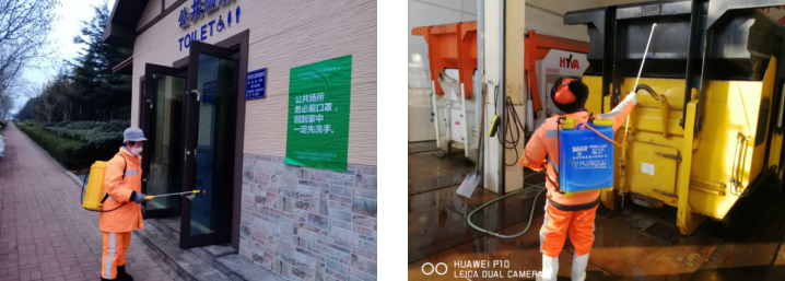 公厕和垃圾转运站作为一级防控区域,是环卫公司督导检查和执行标准化防空措施的重点,按照“321”工作模式,即:每日不少于3次集中消杀、不少于2次督导检查、不少于1次补充消杀物资的要求全面防护保障,公厕“一客一保洁,一客一消杀”、垃圾转运站“一车一消杀、收车必消杀”成为疫情防控期间的常态作业标准。同时,着重加强对公厕和转运站作业人员的培训教育,及时宣贯防疫要求和工作标准指南,在严密保护自身安全基础上,有序有效平稳实施消杀作业。实行“责任报告制”,日常密切关注工作环境,对可疑的人或事第一时间上报,不盲目处置、不轻易放过,并配合各方做好宣传推广等具体工作。