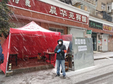 “你们辛苦了,我给你们送壶热水来!”忙碌之中,背后传来了一位阿姨的声音,手提暖瓶出现在眼前。伴着天气的寒和内心的暖,刚接班的张振山,开始了新一天的战“疫”!
