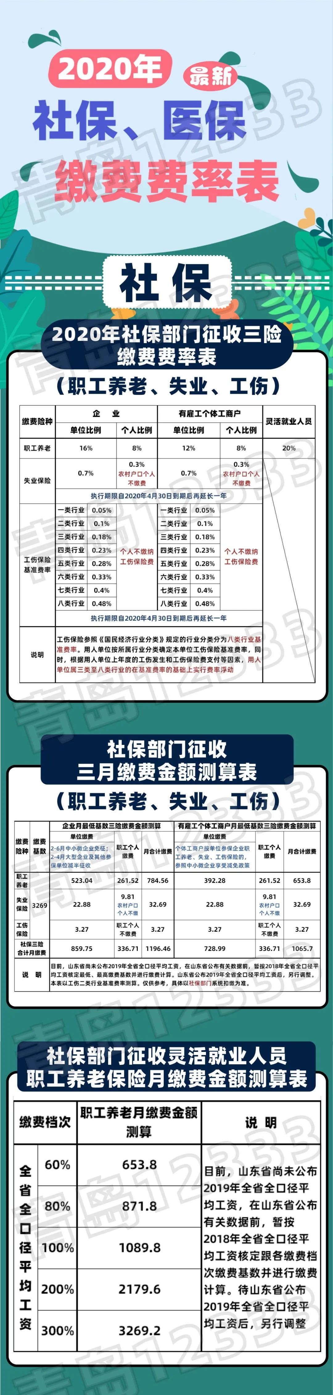 奉上最新社保、医保缴费费率表2020年社保医保缴费标准刷新