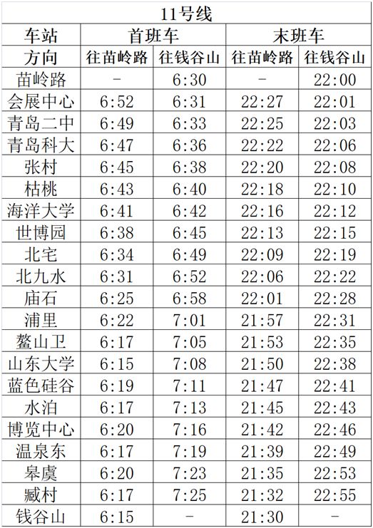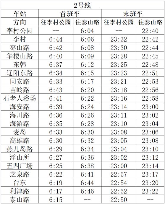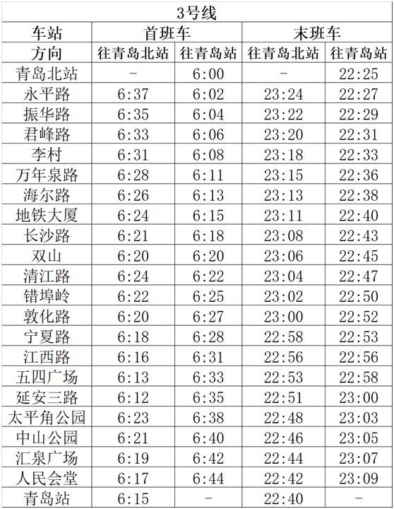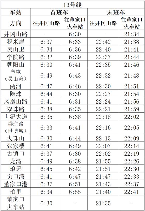 2、3号线工作日平峰、周末间隔及11、13号线运行安排均不变。各线路车站首末班车时间不做调整。