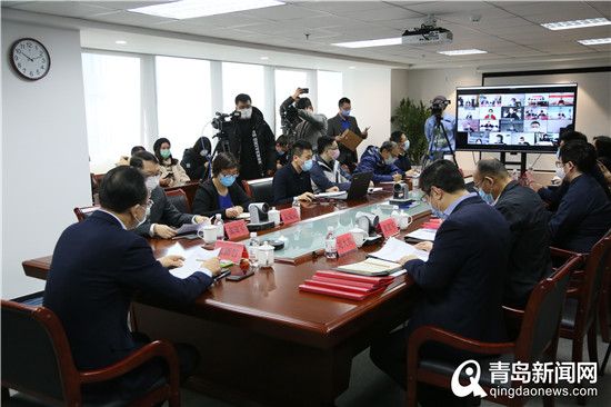 市北区委书记张新竹、副区长刘大川、青岛市商务局招商促进中心主任张建军、美国青岛工商中心常任代表左爱民等在中联自由港湾视频会议室参会,山东港口金融控股集团姜春凤总经理、卫狮集团中国邹俊善总经理、青岛泰富酷创投资中心罗阳总监等领导在所在单位通过视频会议系统参会。