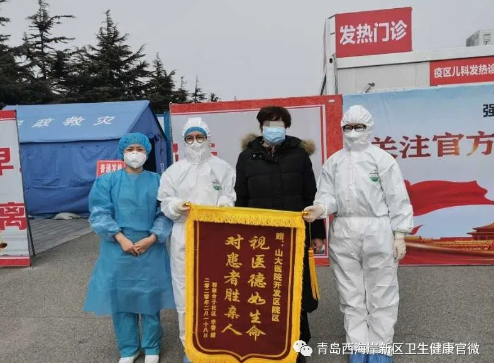 3月3日,青大附院西海岸院区发热门诊收到一面特殊的锦旗。