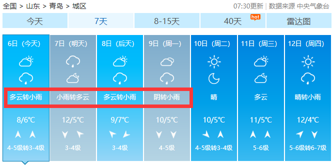 事实上还不仅仅是青岛,据中国天气网消息,预计鲁西北的东部、鲁中的北部和半岛地区都将有小雨“叨扰”。