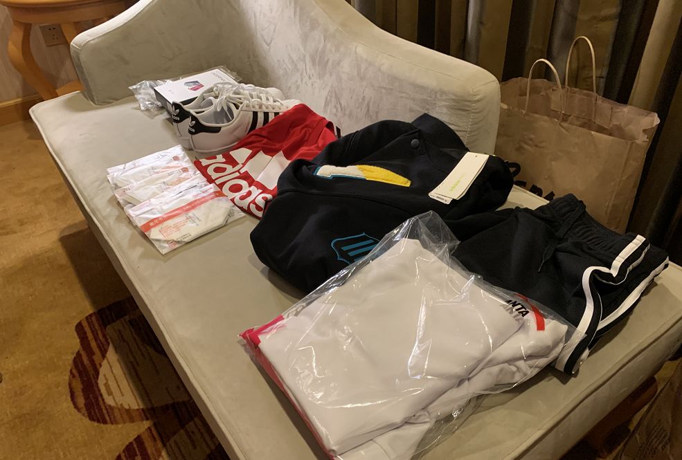 这些都是给儿子准备的新衣服、新鞋子申军良从济南自驾到广州,买了适合儿子现在体型的名牌衣服、鞋等物品。申称,24小时不断想孩子缺什么,想了很多办法最终为他买到5个N95口罩。父与子: