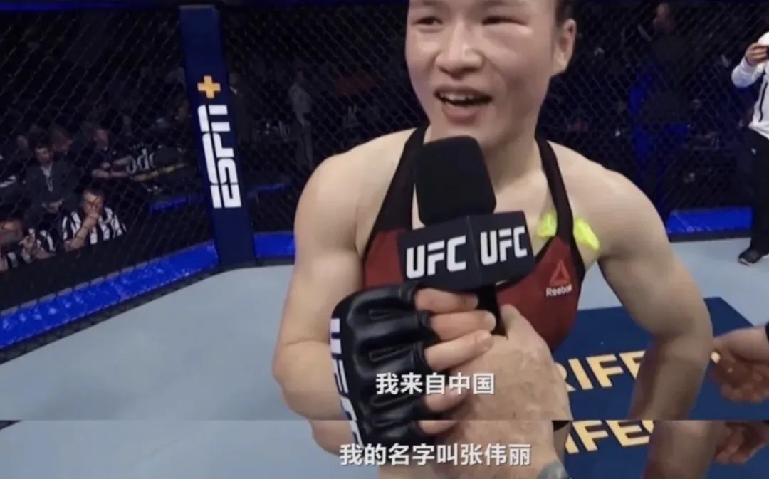 直到上一届的世界冠军——巴西女拳王安德拉德收下了「战书」,决定应战。谁知张伟丽仅仅用了42秒的时间,就K.O了这名瞧不起她的女拳王,成为中国首位UFC冠军。她170次出拳,命中对手169拳。来看看这爽爆炸的42秒。👇比赛结束后,这个不善言辞的姑娘只说了三句话,。却厚重而有力量。「我来自中国,我叫张伟丽,请记住我。」
