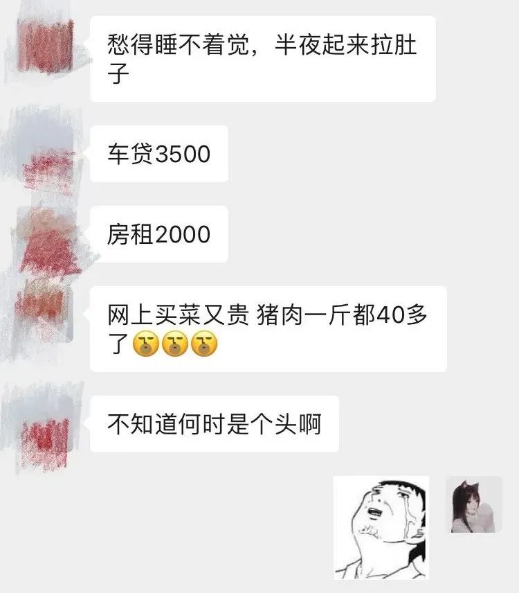 还有产检费用,房贷车贷,老公做销售的,不出去跑一个月一分钱都没有,现在只能坐吃山空。”